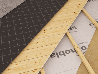 BYTUM BASE 2500 is laid parallel to the dock beam or the floor if laid on a wall. The second layer must be overlapped by at least 15 centimetres. Each layer must be fixed to the substrate with a mechanical fastener. (ex: HAMMER STAPLER, HAND STAPLER o PNEU STAPLER). It is also advisable to overlap the sheets by at least 30 centimetres at the butt joints. In order to achieve correct air and water sealing, we recommend the use of ALU BAND, SEAL BAND, EASY BAND, SPEEDY BAND, SOLID BAND, FLEXY BAND, SMART BAND, PLASTER BAND, DOUBLE BAND, SUPRA BAND, BUTYL BAND, MEMBRANE GLUE, SUPERB GLUE, ECO GLUE, FIRE SEALING, FIRE FOAM, FIRE STRIPE, FRONT BAND UV 234 or in the case of rough surfaces (such as rough OSB) FLEXI BAND, PRIMER SPAY, PRIMER .
