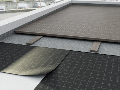 The screen-printed film makes installation extremely easy. The adhesive compound and the polyester surface finish allow perfect self-sealing of the membrane. Used on slopes up to 5° as an underlay, this adhesive bituminous membrane guarantees excellent water tightness.