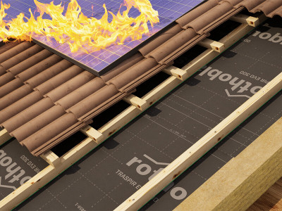With partial exposure at open joints up to 50 mm wide and within 40% of the total surface area, UV stability is permanently guaranteed; however, the special composition of TRASPIR EVO 300 ensures excellent UV resistance even during construction. The functional polyacrylate film offers thermal resistance up to +120°C, making it ideal for application even under photovoltaic and solar thermal panels.
