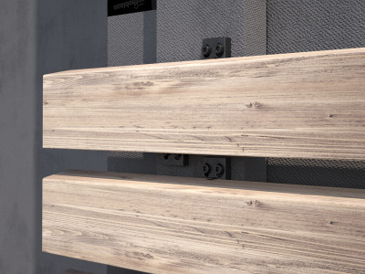 The larger bearing surface ensures that the substructure is not crushed at all. Thanks to the assembly stop, it is possible to position each connector with extreme precision. The assembly stop ensures precise positioning of each connector. The slotted holes permit the natural movements of the wood.