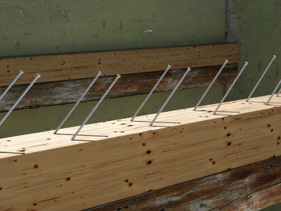 The deep thread and high resistance steel (fy,k = 1000 N/mm2) of the VGZ wood screws guarantee excellent tensile performance. Ideal for coupling beams in structural renovations and new works. VGZ wood screws are approved for structural applications subject to stresses in any direction vs. the grain (α = 0° - 90°).