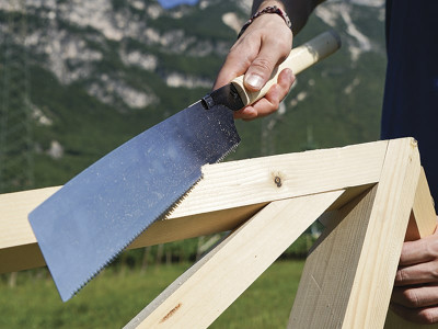 Japan double-toothed saw for precise cutting of any timber, both along and across the fibres. With rattan handle, foldable for tool-free blade replacement.
