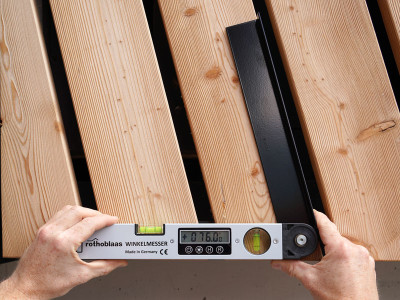 Wide measuring range from 0° to 180° for high accuracy. Measurement values can be saved and single or double oblique cuts can be calculated.