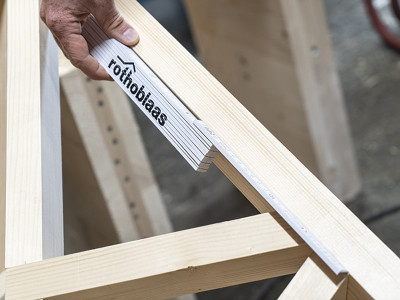 Folding carpenter's ruler made up of a group of rulers, hinged at the ends, kept folded one on top of the other for ease of transport, which once realigned and extended, make a single metric rod of 2 meters.