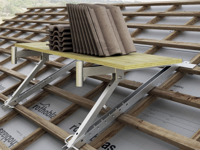 MULE is the materials canopy for temporary storage of materials or machinery on sloping roofs with angles between 15° and 60° (min. 27%).
