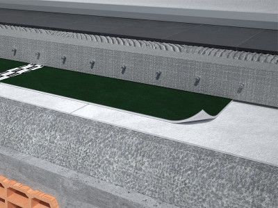 Made of elastoplastomeric bitumen coupled with resilient polyester felt, it is also highly compatible with fresh concrete. The bitumen ensures the necessary mass to guarantee mechanical strength and protection of the substrates with no risk of concrete percolation.