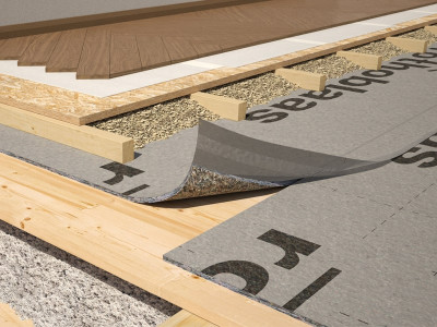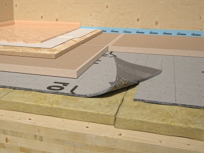 SILENT FLOOR TEX, made of recycled textile fibres, is a soundproofing sheet with an integrated vapour barrier and adhesive strip for quick and easy installation.